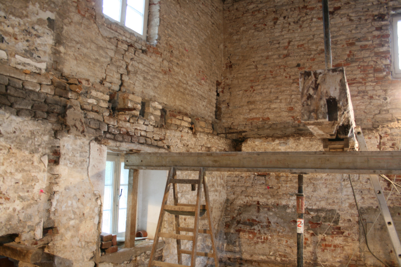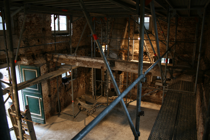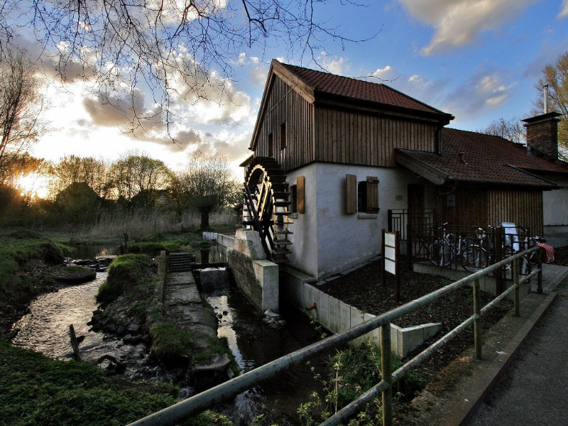 Erste Nachweise der Wassermühle gibt es aus der Karte „Murs Comitatus” 1591 von Johannes Mercator. Dort ist die Mühle als „Volmull“ (Walkmühle) eingezeichnet. Die Obere Wassermühle war Teil einer Schleusenanlage, die die Wasserzufuhr zum Stadtgraben regulierte. Damit war die Aumühle ein bedeutender Teil der Stadtbefestigung, da das aufgestaute Wasser den ansonsten trocken gehaltenen Graben inklusive der anliegenden Felder flutartig unter Wasser setzen und somit den Stadtkern vor Feinden schützen konnte, was einige Male – zum Beispiel während des Dreißigjährigen Krieges – notwendig war.